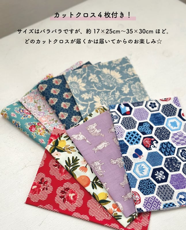 ※カットクロスの寸法は約18×25cm〜約35×30cmなど大きさはバラバラ。