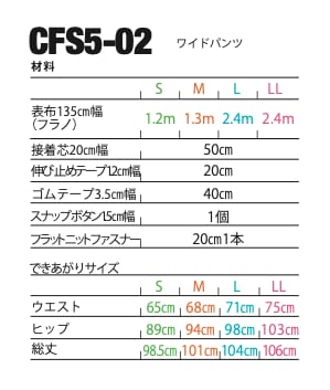 CFS5-02 ワイドパンツの縫い代付き型紙 1点