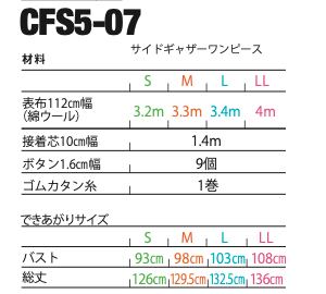 CFS5-07 サイドギャザーワンピースの縫い代付き型紙 1点