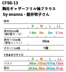 CFS6-13【縫い代付き型紙のみ】胸元ギャザーフリル袖ブラウスby enanna 朝井牧子さん/COTTON FRIEND SEWING vol.6