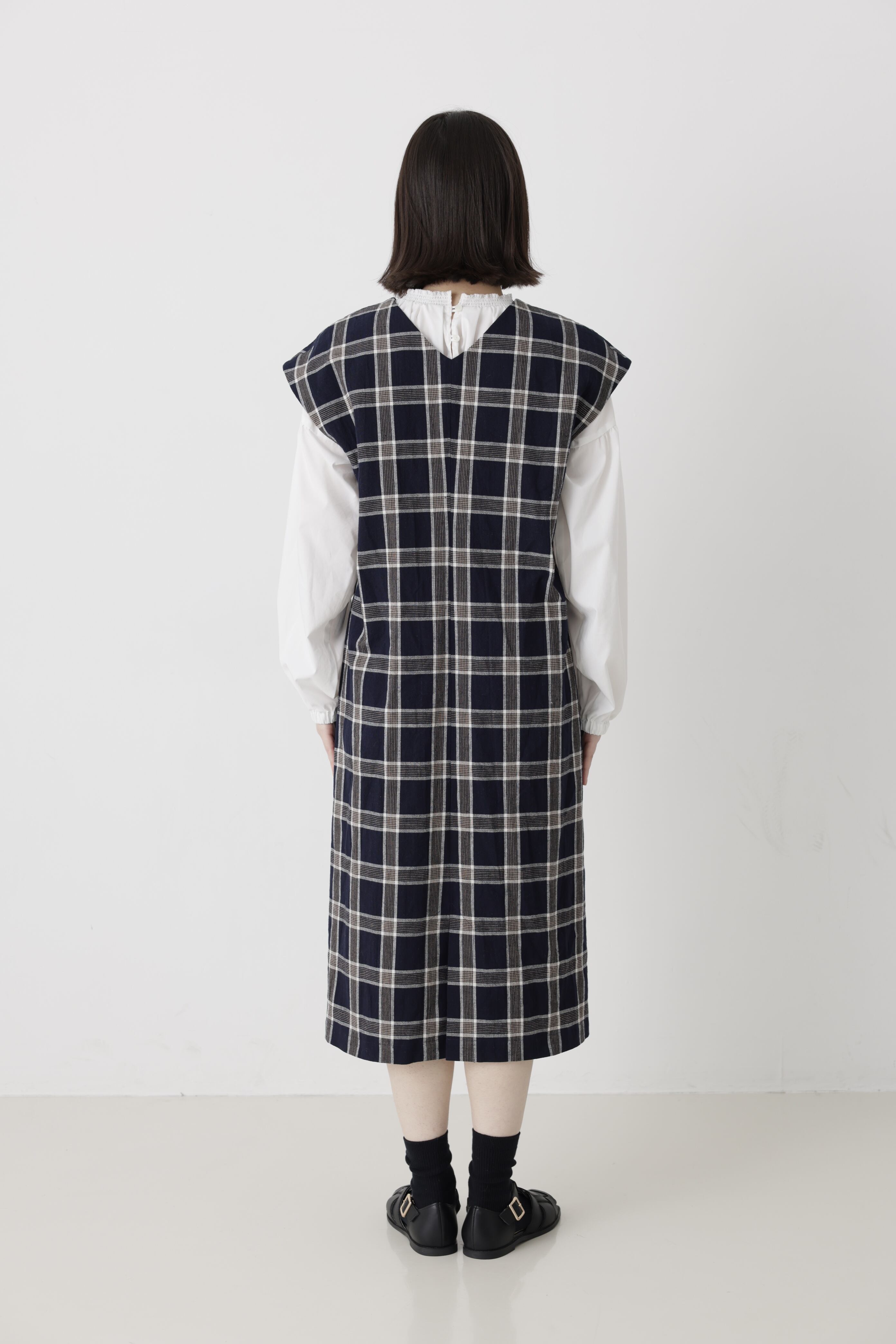 15_肩を覆うフレンチスリーブのジャンパースカート。
