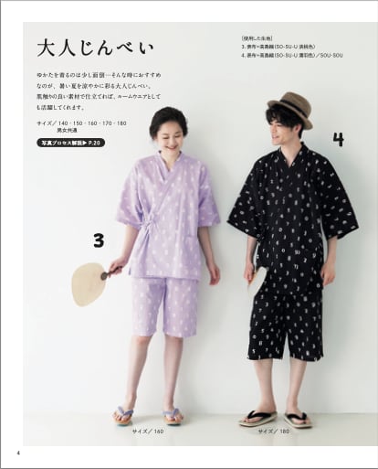 クライ・ムキ著「家庭用ミシンで作る 家族みんなのじんべい&ゆかた 」掲載の